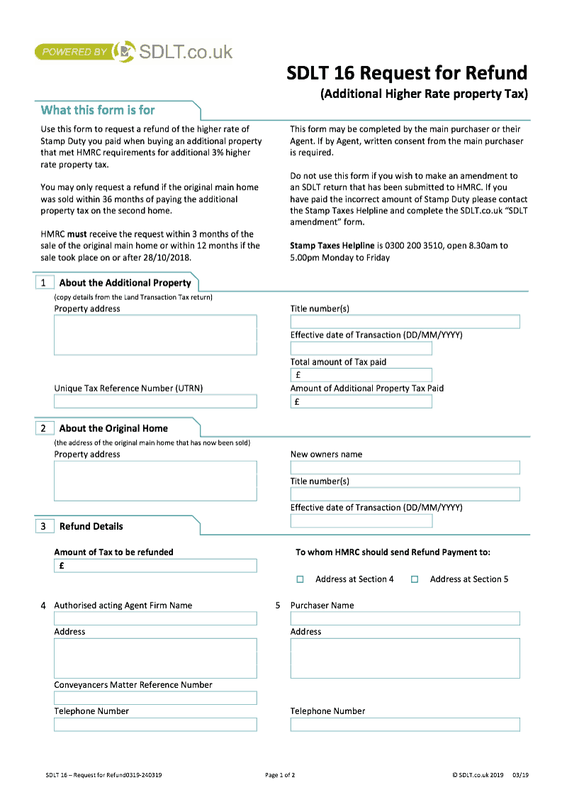 Sdlt 16 Refund Request For Refund Sdlt 16 Stamp Duty Land Tax Additional Property Higher Rate Tax