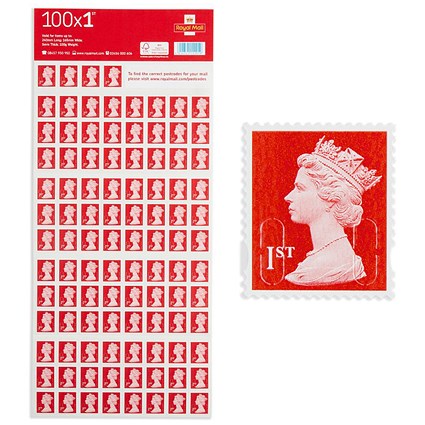 Royal Mail 1st Class Postage Stamps 100 Per Pack Paperstone